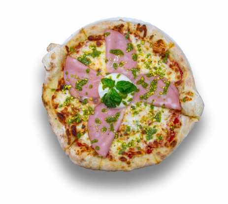 Pizzas artesanas con masa crujiente e ingredientes de calidad, desde clásicos como Margarita hasta combinaciones únicas como la de Mortadela con Pistachos o Diavola picante.